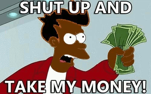 Search discover and share your favorite shut up and take my money gifs. Explore and share the best shut up and take my money gifs and most popular animated gifs here on giphy. The perfect fry shutupandtakemymoney futurama animated gif for your conversation. The perfect shutupandtakemymoney futurama fry animated gif for your conversation.